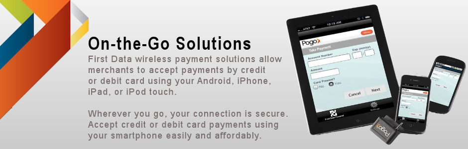 Purchase no additional equipment; just use the data-enabled mobile phone you always carry, navigate to the First Data Mobile Pay URL, and enter and transmit the customer’s credit card number. From your web browser, you can accept payments wherever you have wireless coverage with your current data plan provider. Payments are processed in real time, with an e-receipt generated and sent to the customer via e-mail as soon as the transaction takes place.